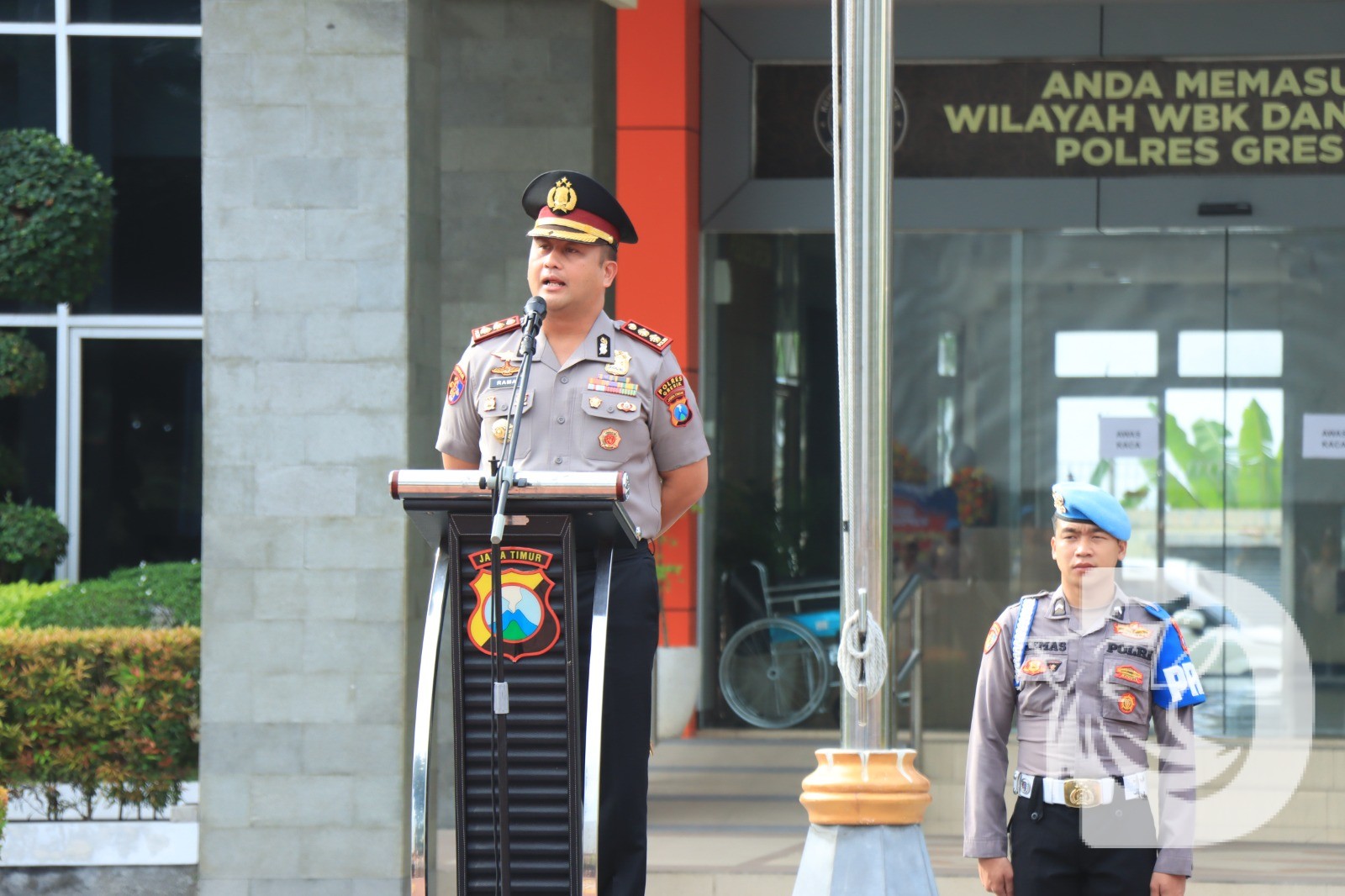 Apel yang berlangsung diikuti Wakapolres Gresik Kompol Shabda Purusha Putra, jajaran Pejabat Utama, para Kapolsek jajaran, serta seluruh perwira, bintara, dan ASN Polres Gresik.