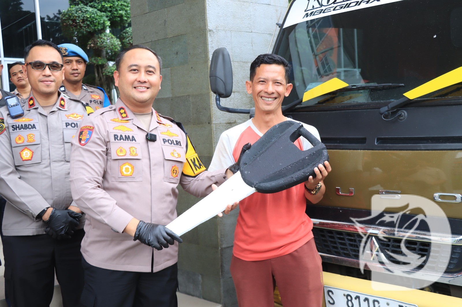 Sebagai wujud pelayanan prima, Kapolres Gresik secara langsung menyerahkan kunci kendaraan kepada para korban yang hadir dalam konferensi pers tersebut, yakni: Aldo, warga Surabaya, pemilik sepeda motor Yamaha Mio, Debi Anafi warga Kecamatan Dukun, pemilik dump truck,