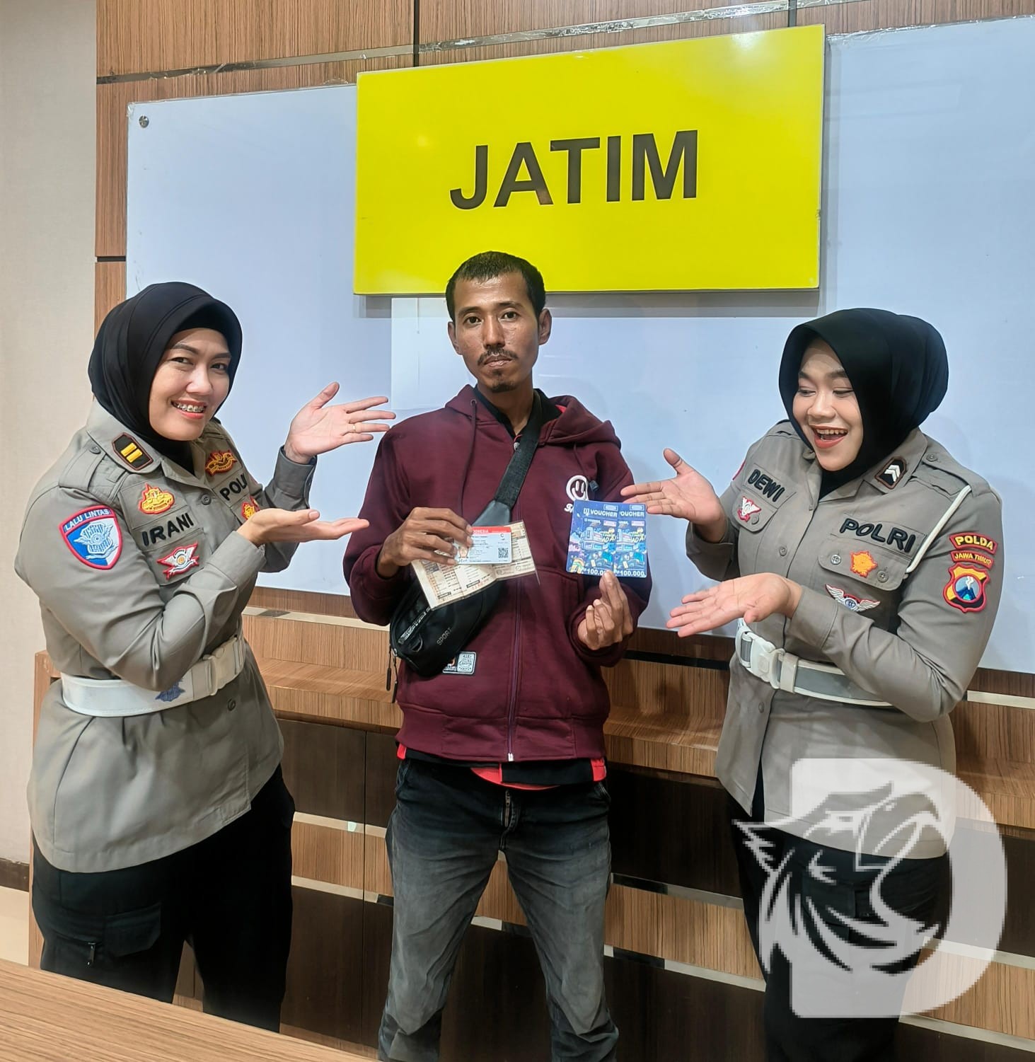 “Alhamdulillah saya dapat rezeki, terima kasih untuk jajaran Polantas Polda Jatim,” ujar Andio.