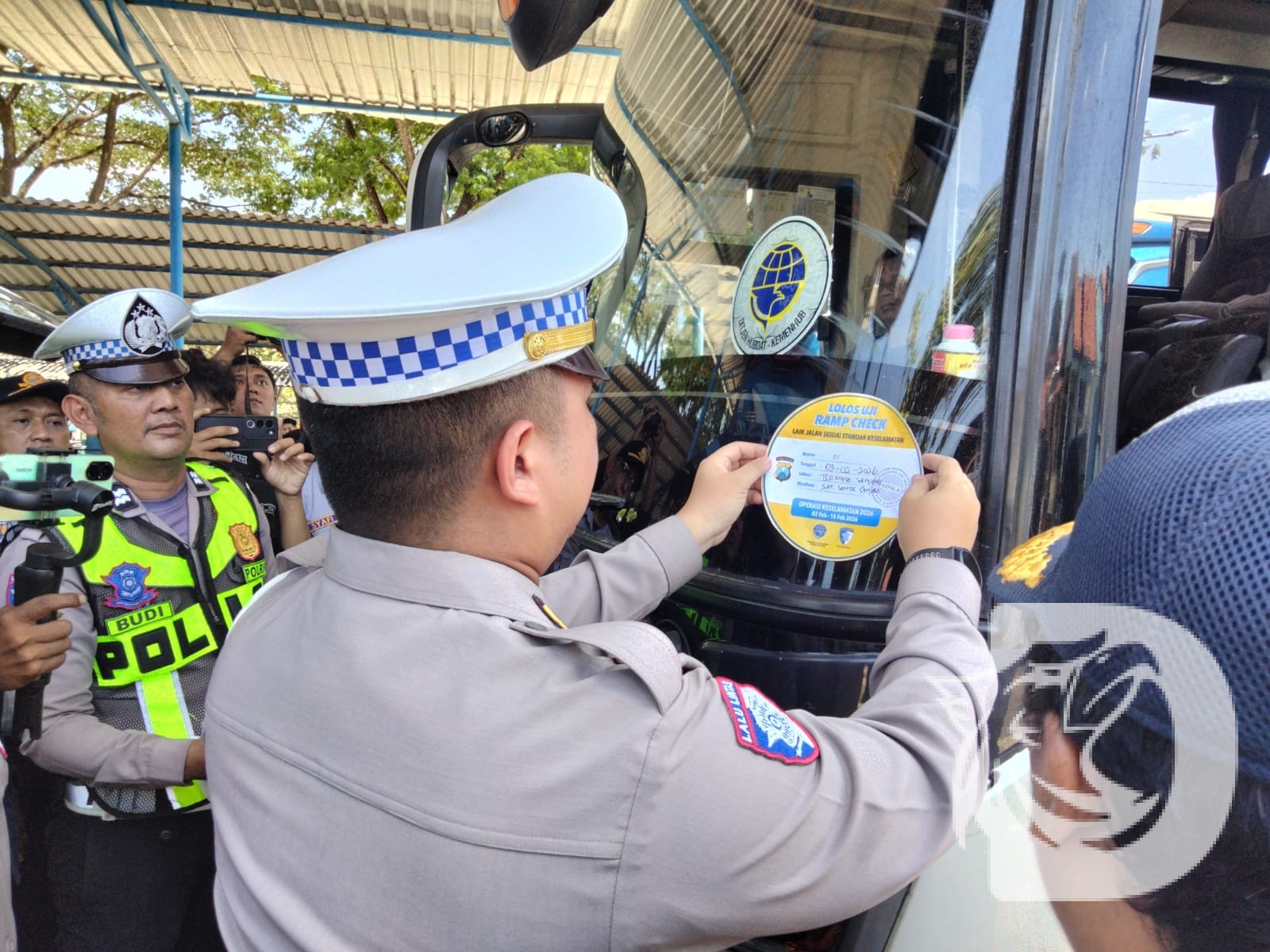 Tidak hanya itu, petugas juga turun langsung melakukan pengecekan kendaraan yang ditandai dengan penempelan stiker sebagai bukti armada telah lolos uji ramp check.
