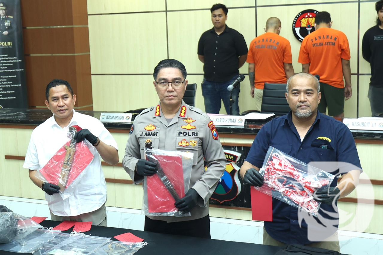 Surabaya – Direktorat Reserse Kriminal UmumPolda Jawa Timur berhasil mengungkap sindikat pencurian bersenjata yang beraksi di sejumlah minimarket di wilayah Jawa Timur.