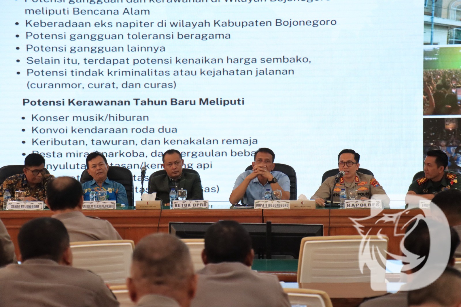 Kapolres Bojonegoro AKBP Afrian Satya Permadi menjelaskan bahwa rapat koordinasi tersebut merupakan bagian dari upaya bersama untuk menyatukan persepsi sekaligus menyelaraskan langkah antarinstansi.