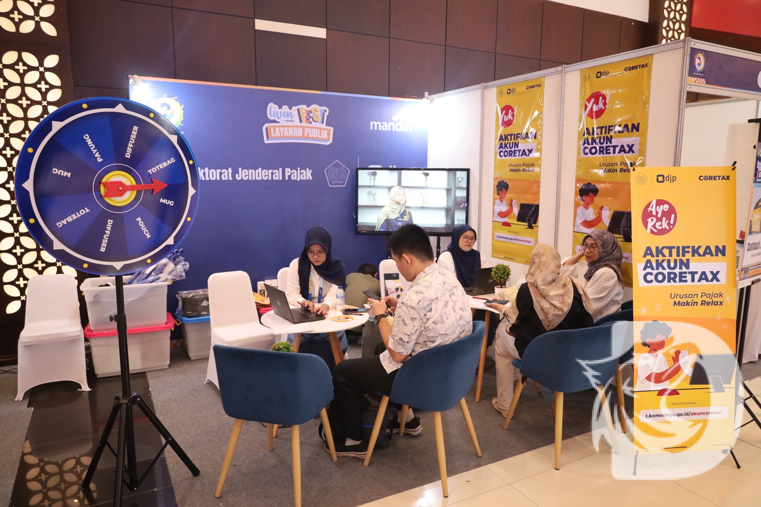 Selain itu, booth DJP juga difokuskan untuk mendukung kampanye aktivasi akun Coretax dan registrasi kode otorisasi DJP sebagai bagian dari transformasi sistem inti administrasi perpajakan. Petugas akan membantu pengunjung melakukan pengecekan status data, aktivasi akun, serta memberikan penjelasan mengenai perubahan proses bisnis perpajakan yang akan berjalan melalui Coretax.