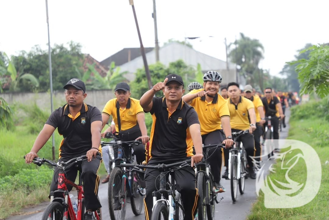Ratusan personel Polri dan ASN Polres Kediri Polda Jatim mengikuti kegiatan olahraga bersepeda bersama Kapolres Kediri AKBP Bramastyo Priaji.