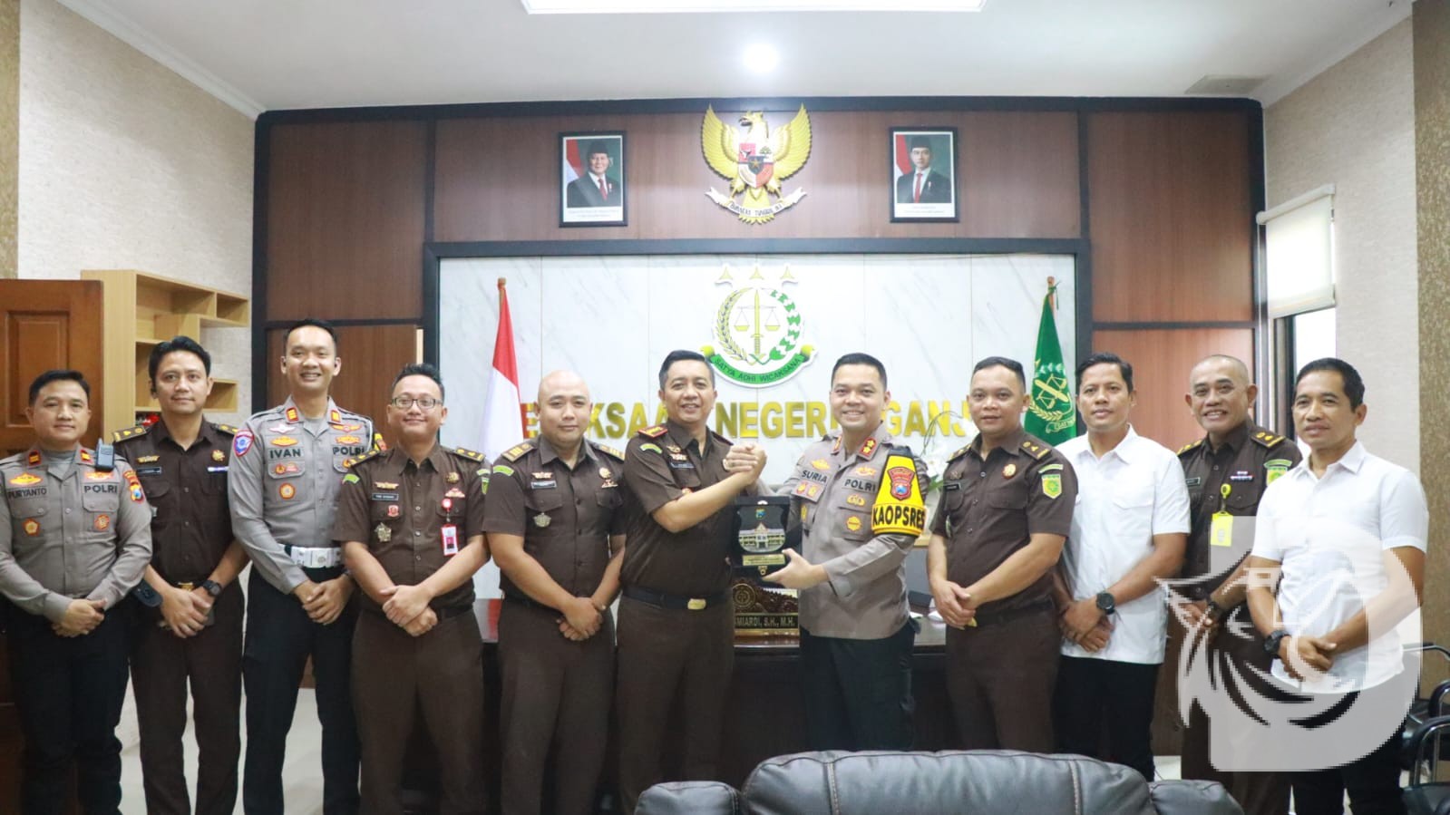 Nganjuk – Kapolres Nganjuk AKBP Suria Miftah Irawan, S.H., S.I.K., M.I.K., didampingi Pejabat UtamaPolres Nganjuk melaksanakan silaturahmi ke Kejaksaan Negeri Nganjuk dalam rangka memperkuat sinergi dan menyamakan persepsi terkait pemberlakuan Kitab Undang-Undang Hukum Pidanadan Kitab Undang-Undang Hukum Acara Pidanayang baru, Senin