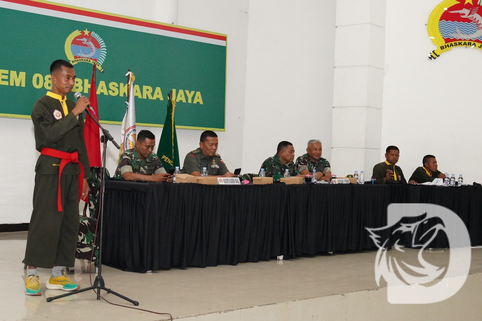 Surabaya – Korem 084/Bhaskara Jaya mengadakan Ujian Kenaikan Tingkat Pencak Silat Militeryang diikuti oleh 127 prajurit. Kegiatan ini berlangsung di Lapangan Upacara Makorem, Selasa, dan menjadi bagian dari upaya Korem untuk membentuk prajurit yang tangguh dan profesional.