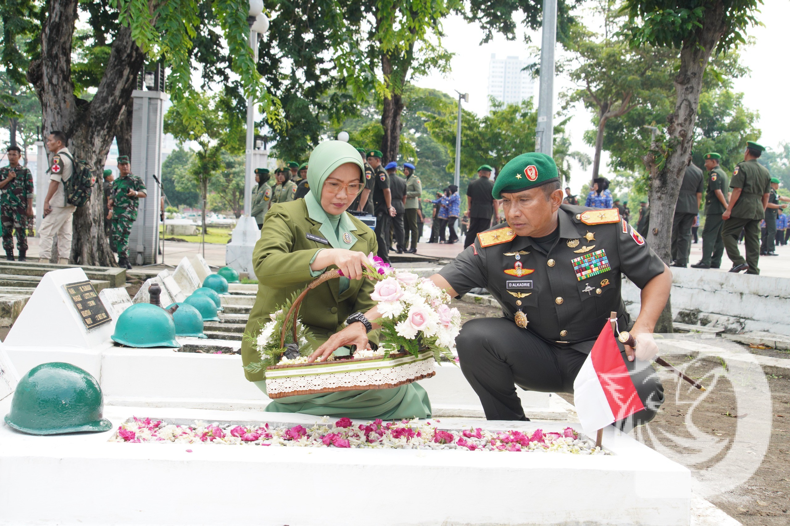 Surabaya – Komandan Korem 084/Bhaskara Jaya, Brigjen TNI Danny Alkadrie, bersama Ketua Persit Kartika Chandra Kirana Koorcab Rem 084/BJ, Ny. Nining Danny Alkadrie, dan anggota Korem 084 turut serta dalam upacara ziarah rombongan untuk memperingati Hari Juang Kartika dan HUT ke-77 Kodam V/Brawijaya. Acara berlangsung khidmat di Taman Makam Pahlawan10 November, Jalan Mayjen Sungkono, Kecamatan Dukuh Pakis, Kamis