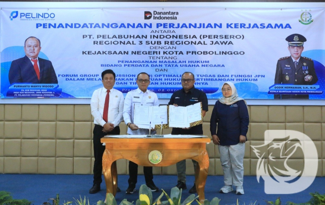 Penandatanganan perjanjian kerja sama dilakukan langsung oleh Sub Regional Head Jawa PT PelindoRegional 3, Purwanto Wahyu Widodo bersama Kepala Kejaksaan Negeri Kota Probolinggo, Dodik Hermawan, S.H., M.H. dan turut disaksikan jajaran pejabat Pelindo serta Kejari Kota Probolinggo.