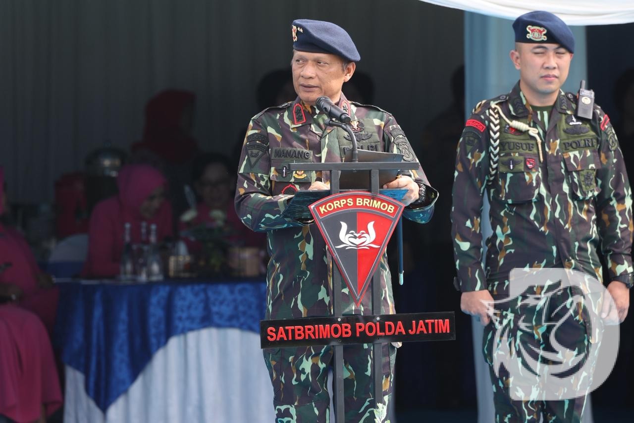 Kapolda Jatim juga menegaskan bahwa tantangan Brimob semakin kompleks, mulai dari dinamika politik pascapemilu, ancaman keamanan kontemporer, kejahatan transnasional, hingga kesiapsiagaan menghadapi bencana alam.