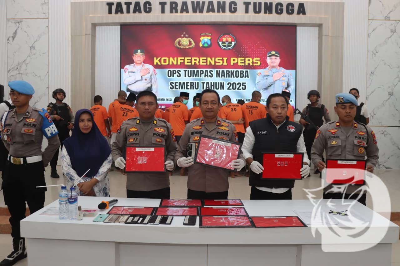 Hal tersebut disampaikan Wakapolres Pamekasan, Kompol Hendry Soelistiawan, didampingi Kasat Resnarkoba, AKP Agus Suyanto, Kasi Humas, AKP Jupriadi dalam konferensi pers Operasi Tumpas Narkoba Semeru 2025, di Gedung Tatag Trawang Tungga, Jl Stadion 81 Pamekasan, Rabupekan lalu.