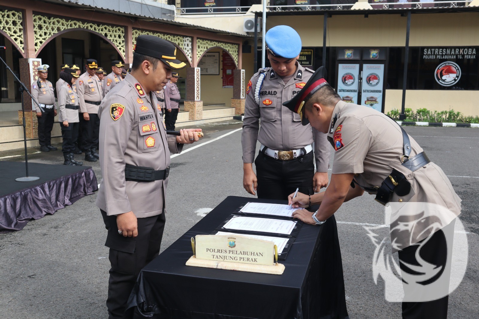 AKBP Wahyu Hidayat menyampaikan apresiasi yang setinggi-tingginya kepada para pejabat lama atas dedikasi dan loyalitas yang telah diberikan selama bertugas di wilayah hukum Pelabuhan Tanjung Perak.