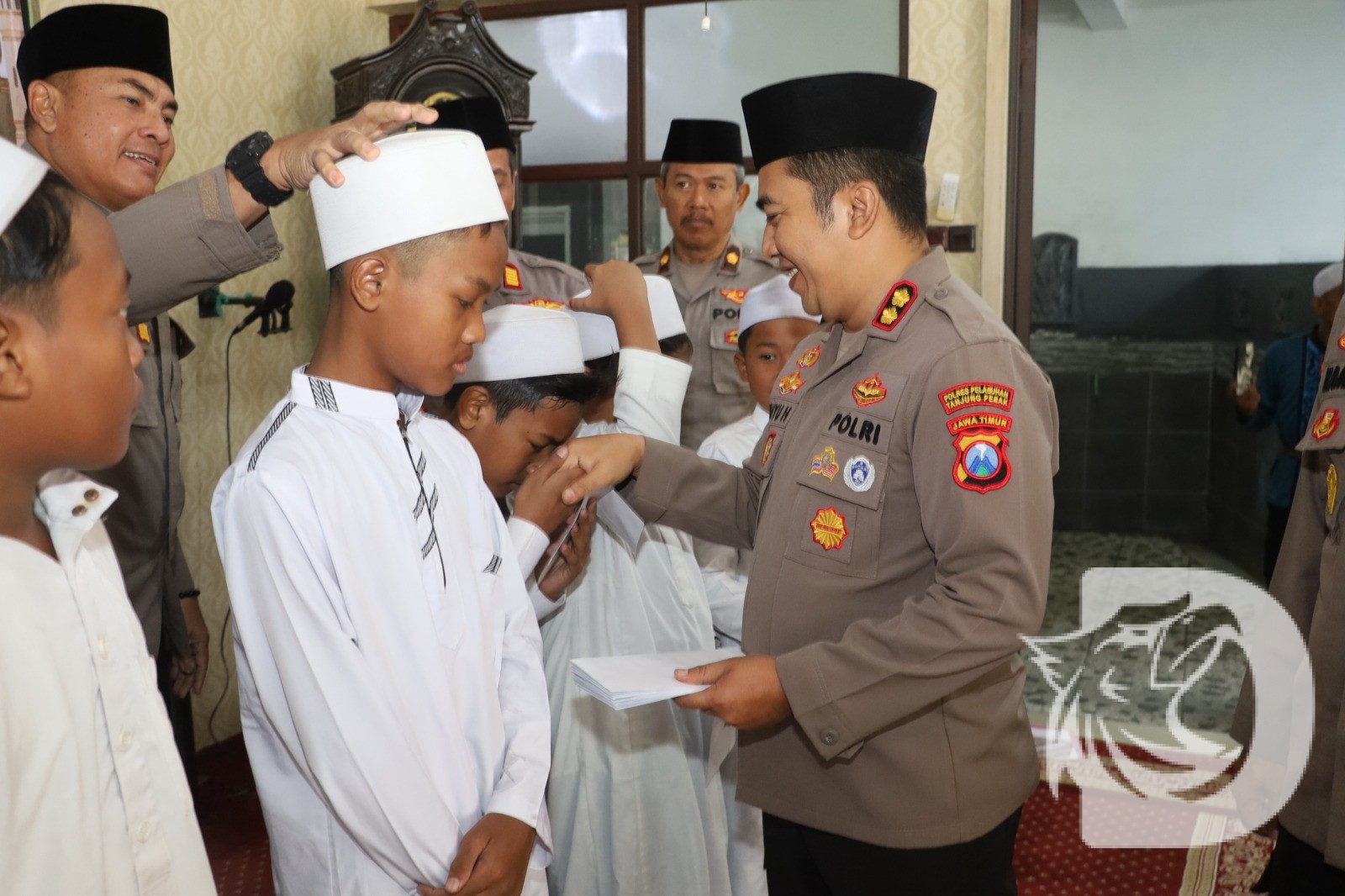 Suasana haru menyelimuti acara saat Kapolres secara simbolis menyerahkan santunan kepada 20 anak yatim yang hadir, sebagai wujud kepedulian dan semangat berbagi dari Polres Pelabuhan Tanjung Perak.