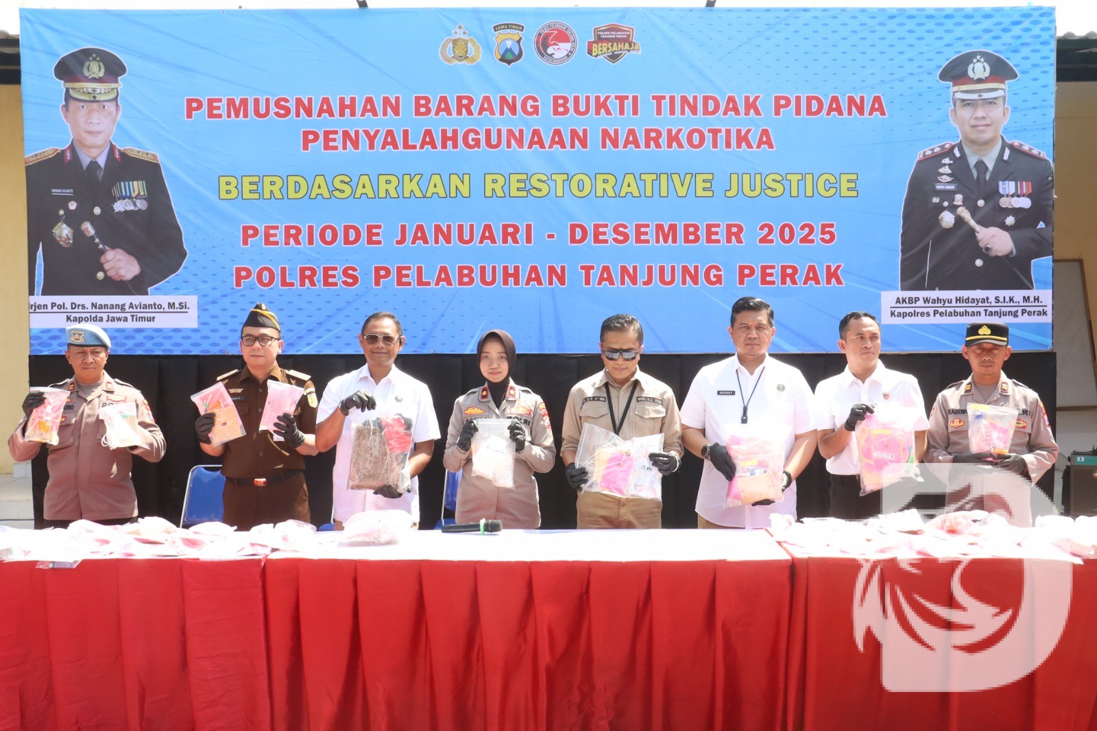 Surabaya – Polres Pelabuhan Tanjung Perak menggelar pemusnahan barang bukti hasil tindak pidana penyalahgunaan narkotika periode Januari hingga Desember 2025. Kegiatan pemusnahan ini digelar secara terbuka di halaman Mapolres Pelabuhan Tanjung Perak, Rabu