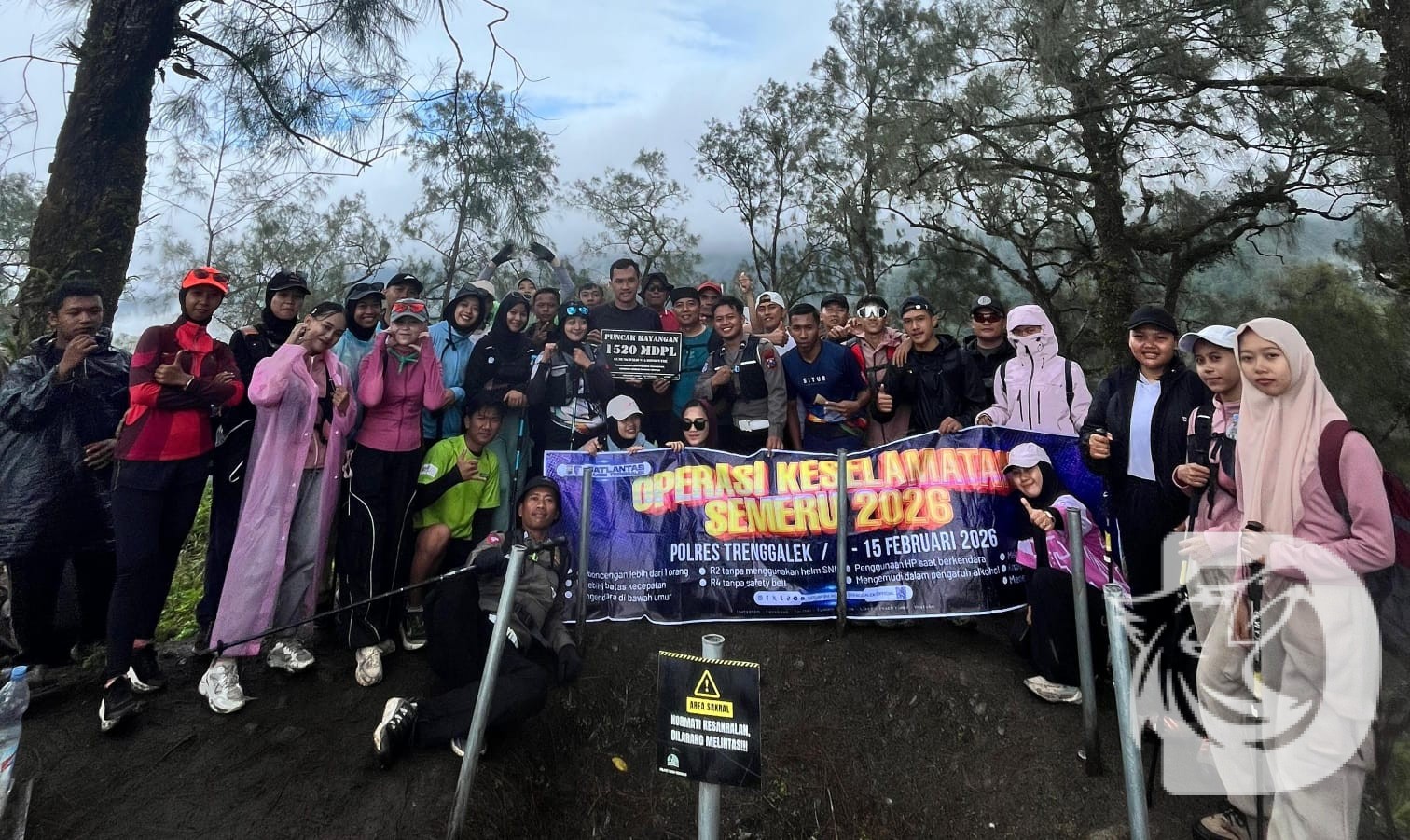 Melalui kegiatan ‘Muncak Bareng’, Polres Trenggalek melakukan pendekatan pada generasi muda dan penggemar mendaki gunung untuk mengkampanyekan Operasi Keselamatan Semeru 2026, Selasa