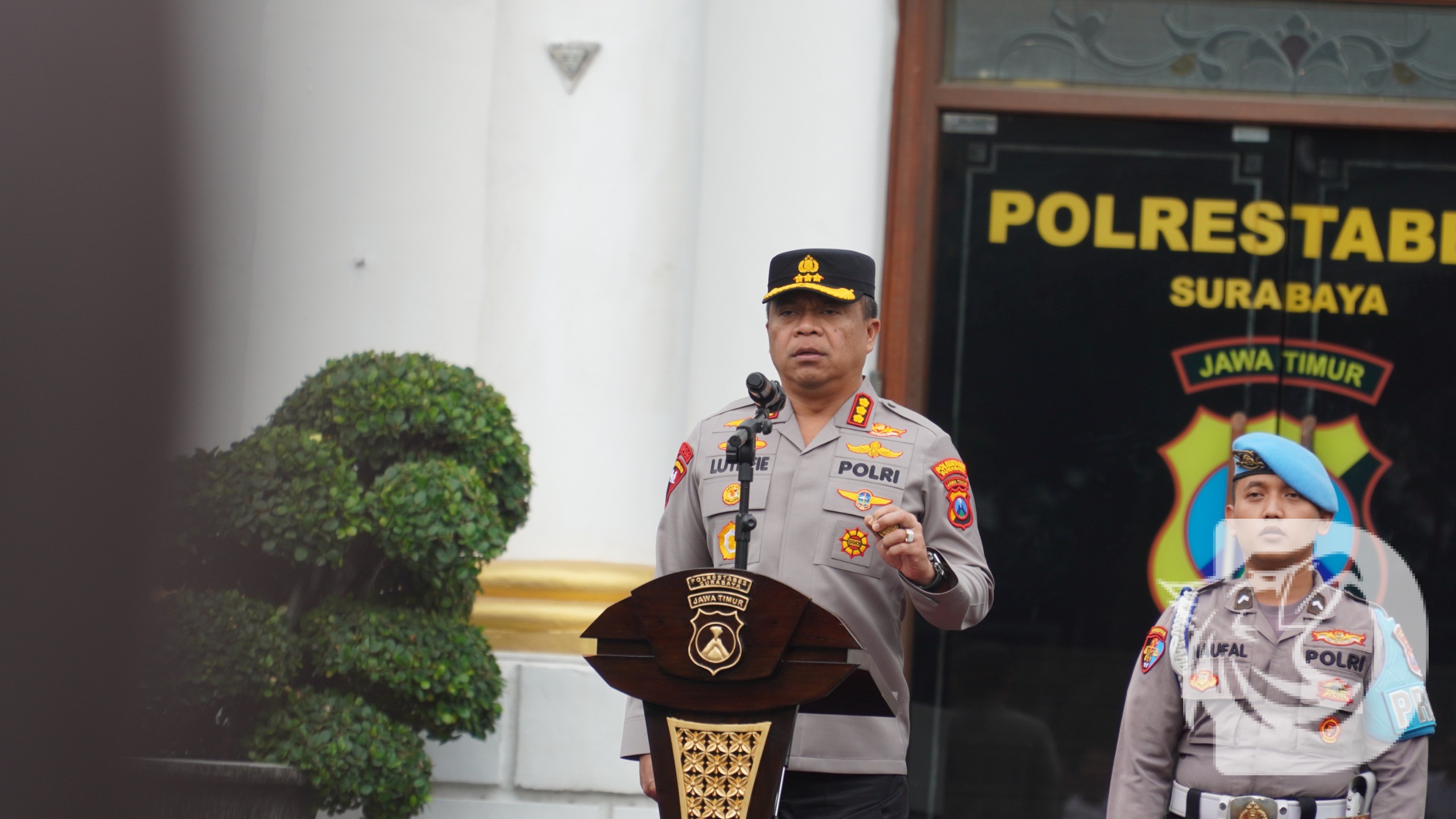 Surabaya — Upaya memperkuat pelayanan publik dan meningkatkan rasa aman warga Kota Surabaya, Kapolrestabes Surabaya Kombes Pol Luthfi Sulistiawan memimpin apel pasukan mentari pagi pelayanan masyarakat dan Houfbereau bersinar yang diikuti seluruh Polsek jajaran Polrestabes Surabaya, Rabu