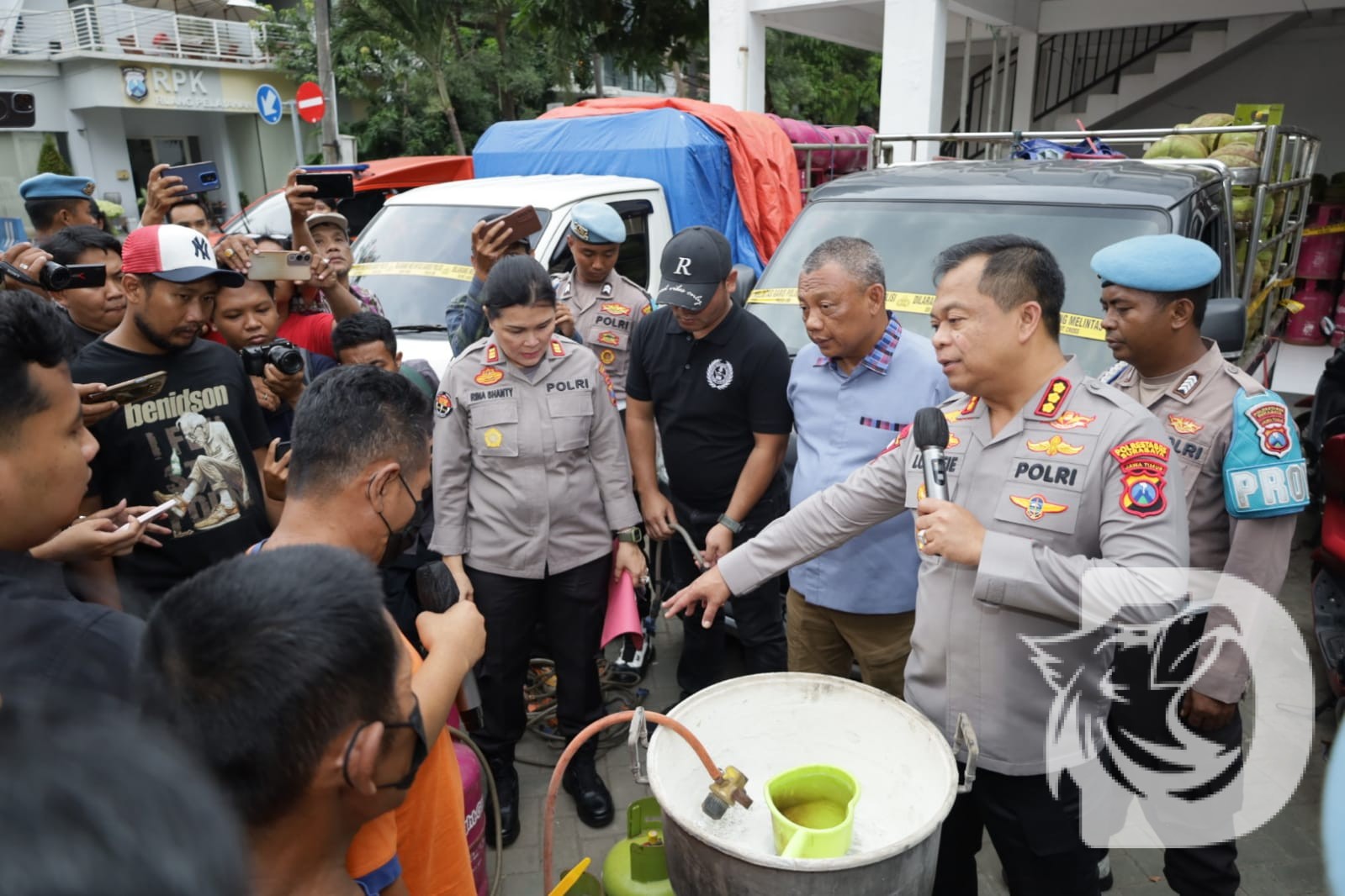 “Mereka kedapatan mengangkut 96 tabung LPG 12 kg warna pink berisi gas suntikan dari LPG 3 kg bersubsidi, tanpa dokumen resmi pengangkutan maupun surat jalan,” ujar Kombespol Luthfi, pada Kamis