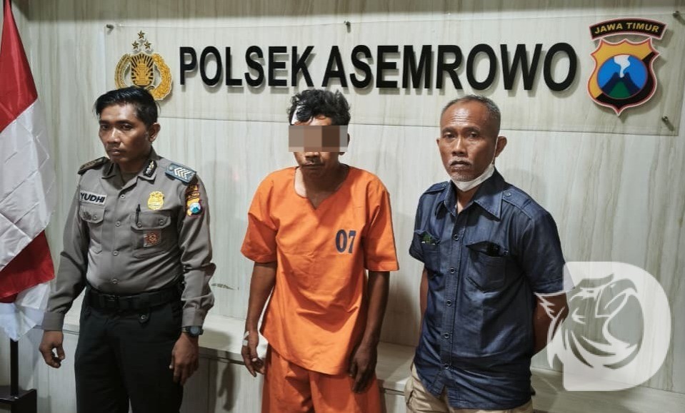 Beruntung, petugas opsnal Polsek Asemrowo yang sedang berpatroli segera tiba di lokasi kejadianuntuk mengamankan pelaku dari amuk massa.