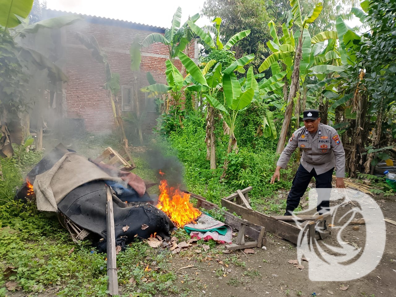 “Begitu anggota kami tiba, arena sabung ayam sudah bubar. Namun, petugas tetap melakukan penertiban dengan membakar sarana atau alat yang digunakan agar tidak bisa dipakai lagi,” ujar Kapolsek Sukodono AKP Saadun, Selasa