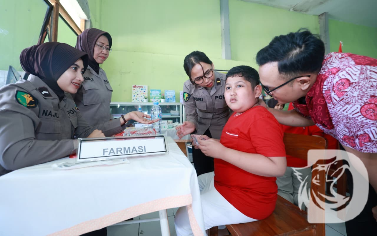 Tidak hanya itu Polwan Polda Jawa Timur melalui Biddokkes Polda Jawa Timur melaksanakan bakti kesehatan kepada siswa berkebutuhan khusus diantara lain pemeriksaan berat badan, tinggi badan, tensi, gigi dan pemberian obat-obatan.