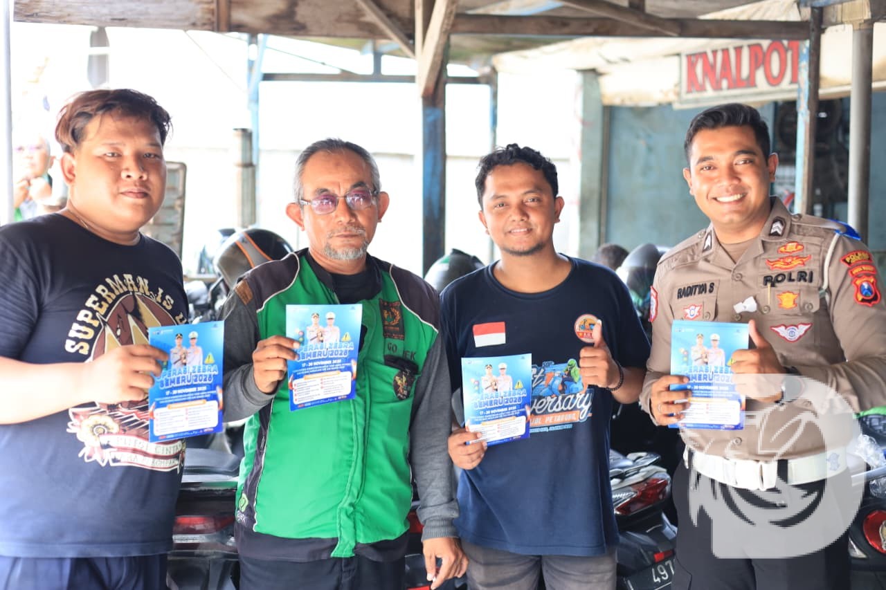 Gresik – Satuan Lalu LintasPolres Gresik terus memperkuat upaya edukasi keselamatan berkendara dengan merangkul komunitas pengemudi ojek onlineMelalui kegiatan sosialisasi yang digelar pada Rabu, 26 November 2025, di Warung Ojol, Jalan Dr. Wahidin Sudirohusodo, jajaran Satlantas menyampaikan berbagai imbauan penting terkait keselamatan berkendara dalam rangka Operasi Zebra Semeru 2025.