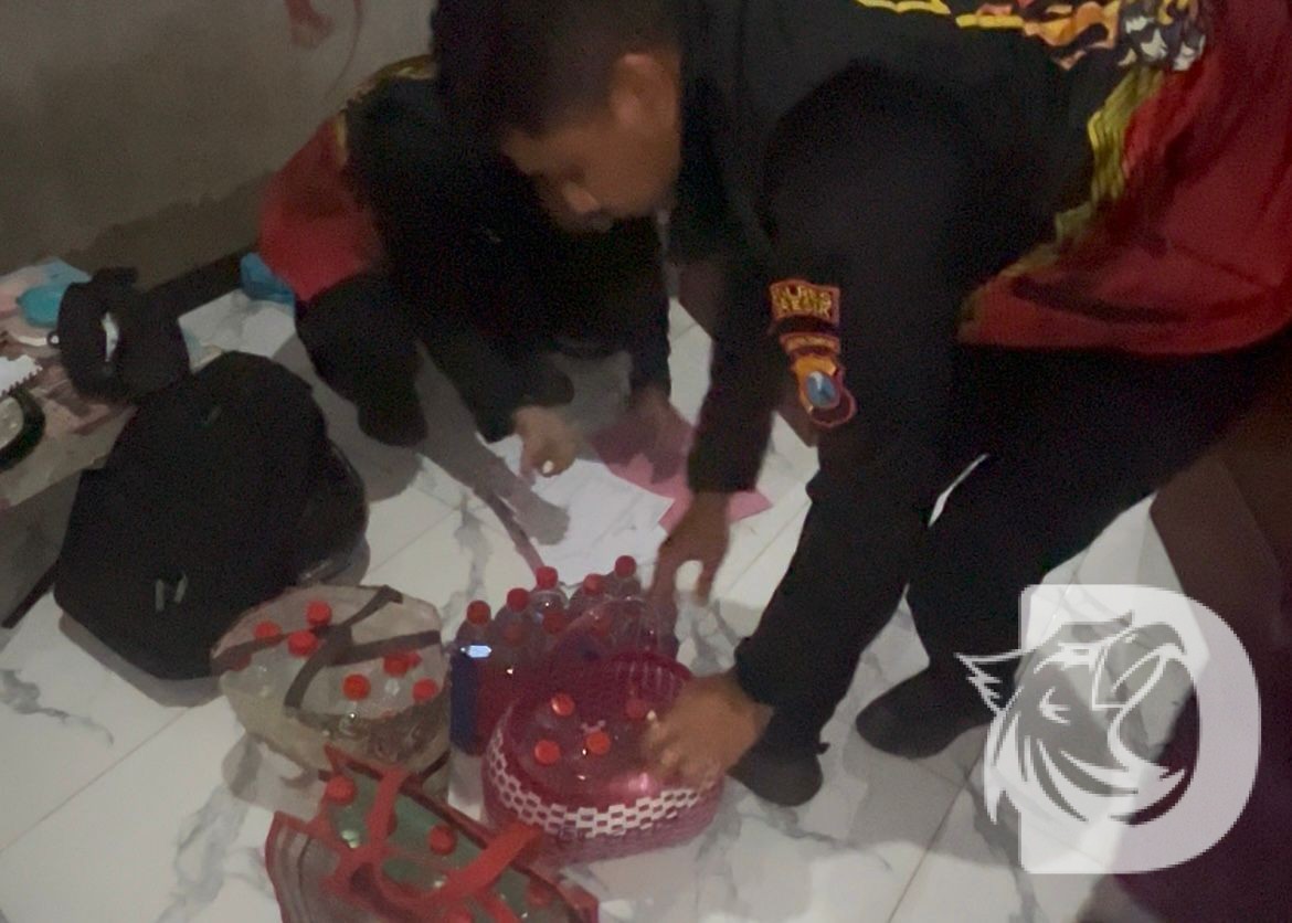 Tim kemudian melakukan penggerebekan di lokasi tersebut dan menemukan pelaku lain berinisial AW beserta barang bukti miras yang disembunyikan di dalam tas dan kamar.